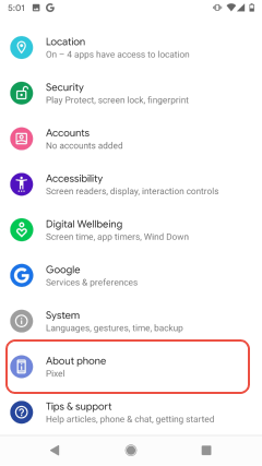 Vaya a Menú > Configuración (se puede encontrar en Aplicaciones o en el menú emergente) > Acerca del teléfono (Acerca de, Acerca del teléfono o Acerca de la tablet)