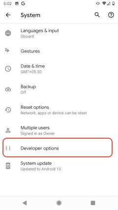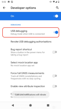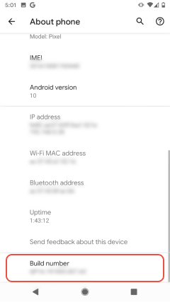 Paso 2: Toca el número de compilación de 4 a 8 veces (una vez hecho esto, verás un mensaje que te felicita por haberte convertido en desarrollador). > Vuelve a la página de Configuración > Desbloquea las opciones de desarrollador > Marca la casilla junto a Depuración USB